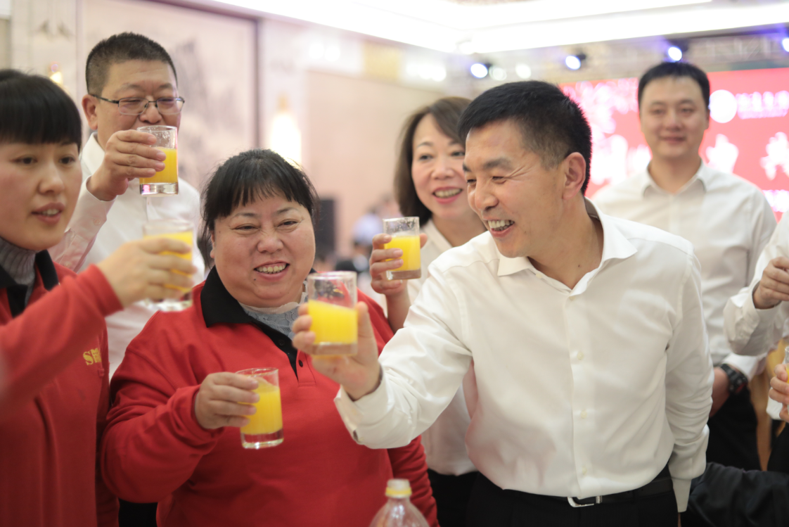 晚宴期间,冯董事长带领集团高管来到员工中间,跟大家一起碰杯祝福、表达感谢之情,大家脸上都洋溢着幸福、快乐的笑容。晚宴23点整,冯董事长在软件平台现场发放红包雨,大家都放下手中的碗筷,抡起袖子,在欢声笑语中抢红包,红包雨一直持续到23:15才结束,抢红包环节将晚宴推向了最高潮。